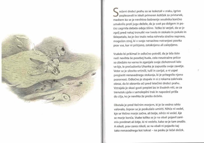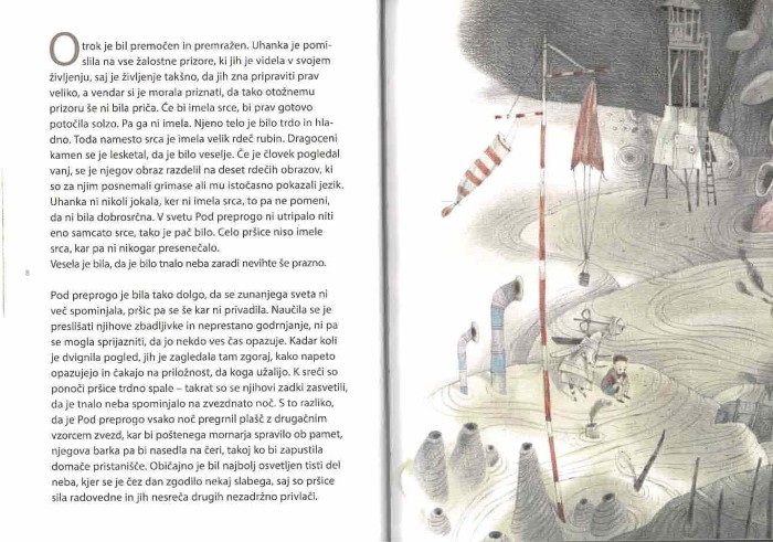 Brezupno situacijo deček ne doživi sam. Njegovo pot spremljata bitji — Uhanka z rubinom v srcu in rakec Izo — ki potrjujeta, da je kljub vsemu mogoče najti prijateljstvo, tolažbo in varnost. Skupaj s drugimi nenavadnimi prebivalci Pod preproge brata po izgubljenem imenu in preteklosti ter skušata obnoviti človečnost in upanje. Zgodba poudarja, da je pogum, zaupanje in sočutje pogosto edina pot iz teme.