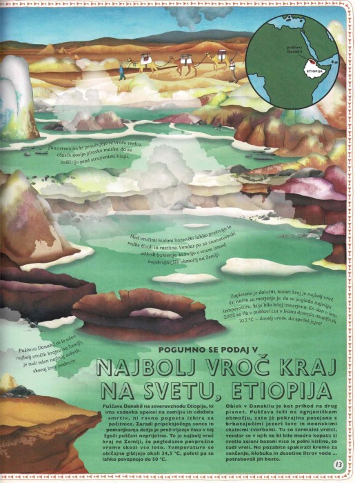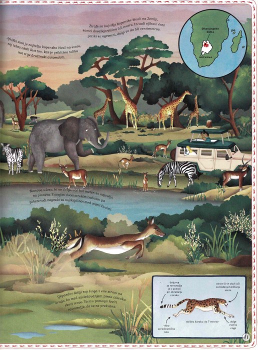 Lucy Letherland je ustvarila bogate, barvite ilustracije, ki so polne humorja in podrobnosti. Vsaka stran je prava vizualna pustolovščina – otroci lahko na ilustracijah odkrivajo male skrite like, humoristične prizore in presenetljive detajle. Knjiga zato ni le vir informacij, temveč tudi zabavna interaktivna izkušnja, saj ilustracije otroke spodbujajo, da se k strani vedno znova vračajo.