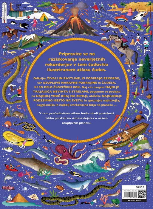 Atlas osupljivih rekordov je čudovita, barvita in poučna knjiga, ki bralce vseh starosti popelje na potovanje okoli sveta, polno neverjetnih dejstev in rekordov. Avtorica Emily Hawkins je pripravila zbirko osupljivih podatkov, ilustratorka Lucy Letherland pa je knjigo oživila z ilustracijami, ki so igrive, duhovite in polne podrobnosti. Rezultat je atlas, ki združuje znanje, zabavo in čudenje nad raznolikostjo našega planeta.