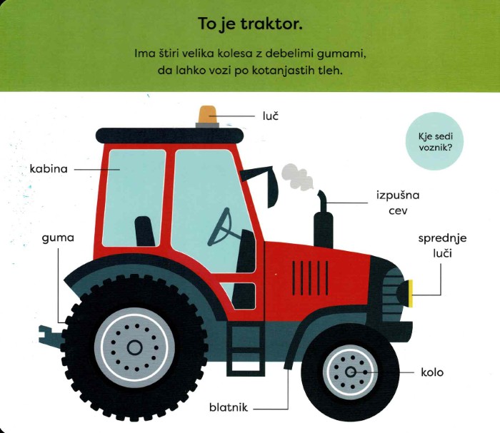 Bodi voznik: Kmetija je interaktivna kartonka z drsniki, kjer otrok vozi traktor, kombajn in druga vozila po kmetiji.