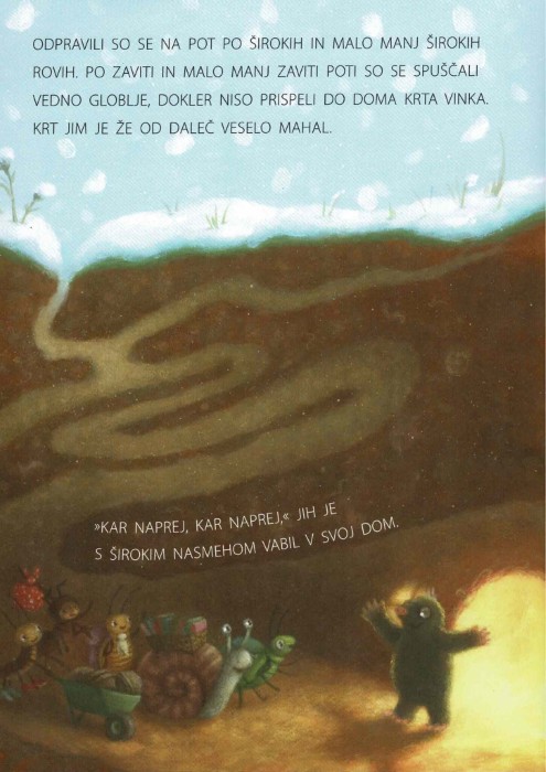 V knjigi Božič pri krtu se mali krt nauči, da prava sreča prihaja iz prijaznosti in časa, ki ga delimo z drugimi.