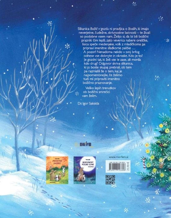 Božič v gozdu je več kot le otroška slikanica – je zgodba o srčnosti, povezanosti in čudežu skupnega trenutka. Knjiga ogreje srca otrok in odraslih ter spominja, da pravo veselje ne prihaja iz daril, ampak iz ljubezni in topline, ki jo delimo drug z drugim. Popolno darilo za praznike ali skupno branje ob svečkah in vroči čokoladi.