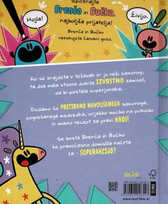 Brenča in Bučko sta polna navdušenja, a nekoliko manj organizirana. Njuna želja po superjunaški akciji hitro preraste v kaos. Dodamo še pogrešanega medvedka, orjaško mucko na pohodu in čarobni gozd, ki nikakor ne sodeluje.