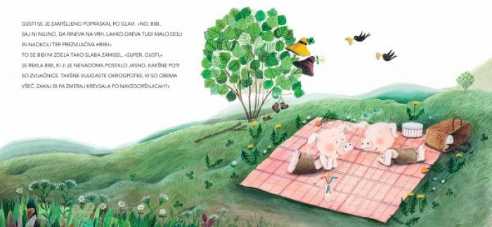 Knjiga Kako sta Bibi in Gusti prezvijačila hrib je šesta slikanica iz priljubljene zbirke o dveh radovednih pujsih, ki z iskrivostjo in toplino raziskujeta svet okoli sebe. Tokrat se znajdemo ob vznožju prijaznega, puhasto zelenega grička, ki spominja na usločen mačji hrbet. Pujsa Bibi in Gusti sta odločena, da ga bosta danes premagala. Ne glede na to, kako majhen ali nedolžen hribček je videti, zanje predstavlja izziv, ki ga je treba osvojiti. Zgodba nežno pokaže, kako velik dosežek je lahko že majhen korak, ko ga naredimo s pogumom in prijateljem ob sebi.
