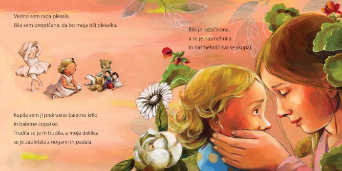 Mama ugotavlja, da hči ne sledi njenim potem. Ne zanima je medicina, ne pleše in ne igra instrumentov, kot je to počela mama. Namesto tega hči pogumno razvija svoje talente. Riše, piše poezijo, šiva. Knjiga pokaže, kako pomembno je, da starš prepozna in sprejme otrokovo edinstveno pot.