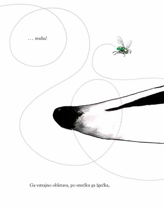 Emily Gravett s svojim značilnim slogom – kombinacijo akvarelov, svinčnika in subtilnih detajlov – ustvari živ, a topel svet, kjer se vsaka stran preliva v gibanje. Žuželke niso strašne, ampak simpatične, barvite in polne značaja. Slikanica ponuja tudi vizualno bogastvo, ki vabi k opazovanju, štetju in pogovoru o živalih, ki nas obkrožajo poleti.