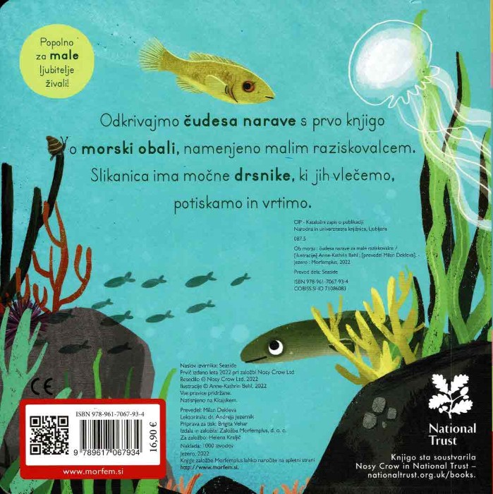 Knjiga Ob morju otroke popelje v poletni svet školjk, peska, valov in raziskovanja narave.