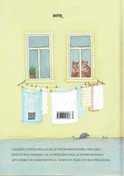 Matjaž je prijazen, dobrosrčen človek, ki Pika najde čisto po naključju. Njegovo presenečenje je veliko, a še večje je vprašanje, kaj naj stori s psičkom. Slikanica pokaže, kako pomembni so prvi koraki skrbi: umirjenost, hranjenje, nežnost in razumevanje, da je žival živo bitje, ki čuti strah, bolečino in veselje. Otroci skozi zgodbo spoznajo, da se s sprejemom živali v dom ne začne le igra, ampak odgovornost, ki zahteva čas, potrpežljivost in srčnost.