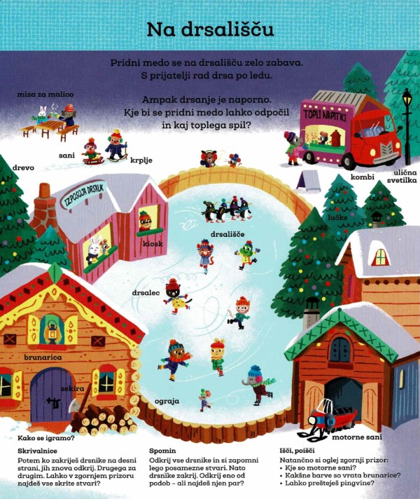 Posebnost te kartonke je preprosta igra spomina. Otroci odpirajo zavihke, odkrivajo skrite slike in se učijo povezovati pare. Knjiga je zasnovana tako, da spodbuja pozornost, koncentracijo in zgodnje miselne sposobnosti. Pridni medo: Moja prva igra spomina – Božič je zabavna kombinacija igre in knjige, ki bo razveselila najmlajše bralce.