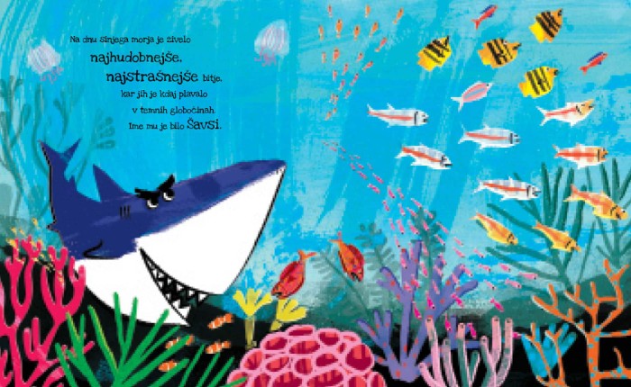 Šavsi Zobec in majceni rakec je topla slikanica o nepričakovanem prijateljstvu v morskih globinah.