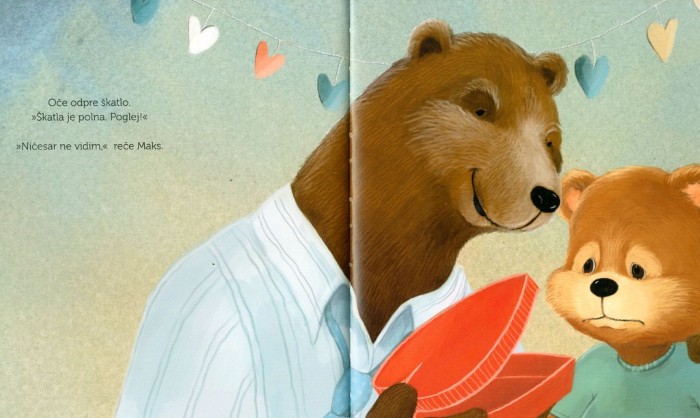 Maks si res želi mami podariti škatlo čokolade, a vsak košček ga vabi k pokušini. Najprej samo en ugriz, potem morda še majhen košček … kmalu pa se zdi, da je z ljubeznijo nekaj narobe: darilo je vse manjše! Slikanica s humorjem prikaže izziv, s katerim se otroci hitro poistovetijo – željo deliti in željo obdržati najboljše zase.