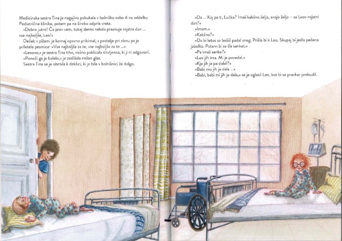 V zgodbi je veliko trenutkov, ki sporočajo nežnost. Prijazen pogled medicinske sestre, tiho brnenje aparata, mehka odeja, ki objame ramena, pogovor s staršem, ki otroku daje občutek, da je ves čas ob njem. Te podrobnosti ustvarijo čudovito bližino med malim bralcem in junakom zgodbe.
