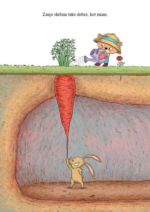 Odnos medveda do rastline je poln topline in skrbi. Knjiga pokaže, da dobra namera ni vedno dovolj, če ne razumemo procesa drugega. Uči sočutja, sprejemanja in potrpežljive podpore.