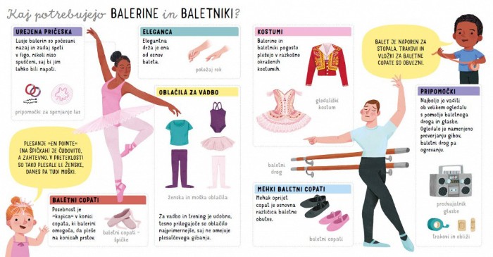 Kartonka pokaže, da balet ni le eleganca, temveč tudi vaja, potrpežljivost in veliko veselja. Otroci na vsaki strani spoznavajo, kako pomembno je gibanje, ravnotežje in zaupanje vase, vse to pa je prikazano na način, ki pritegne že najmlajše bralce.
